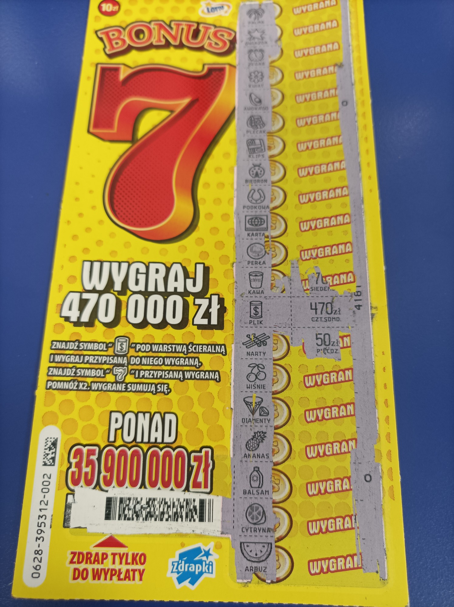 Przy 3 sztuce wpadła nagroda 3 stopnia , czyli 470 ziko. Dodam , że jest to najwyższa wygrana w tej zdrapie