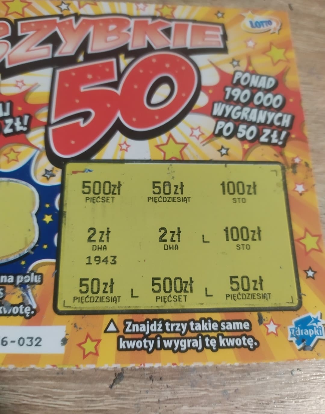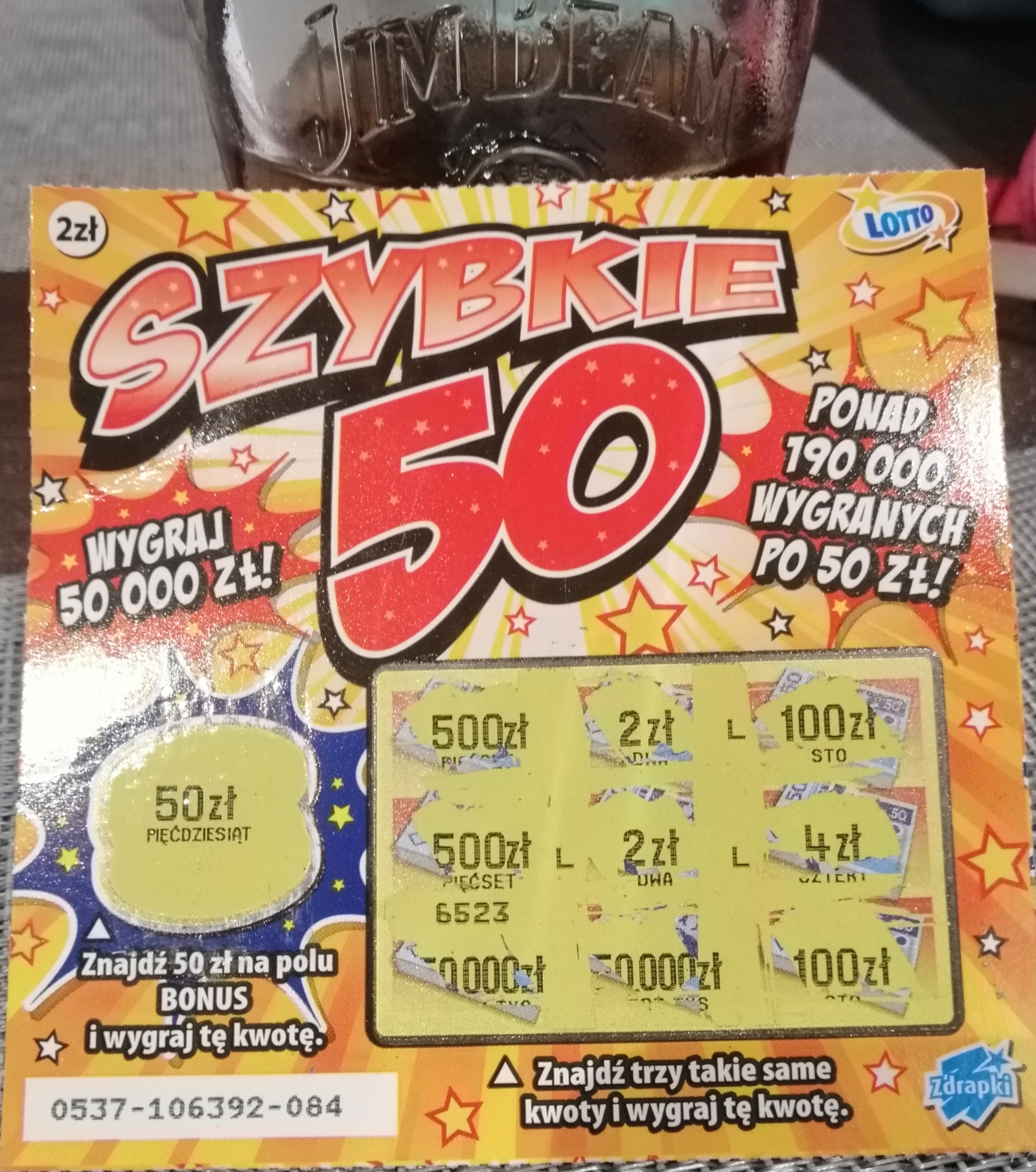 Mojej siostry 50tki, lubi ją ta zdrapka, a w tej edycji więcej jak 10szt nie kupiła, ja nigdy w niej 50zł nie miałam ale próbuję dalej