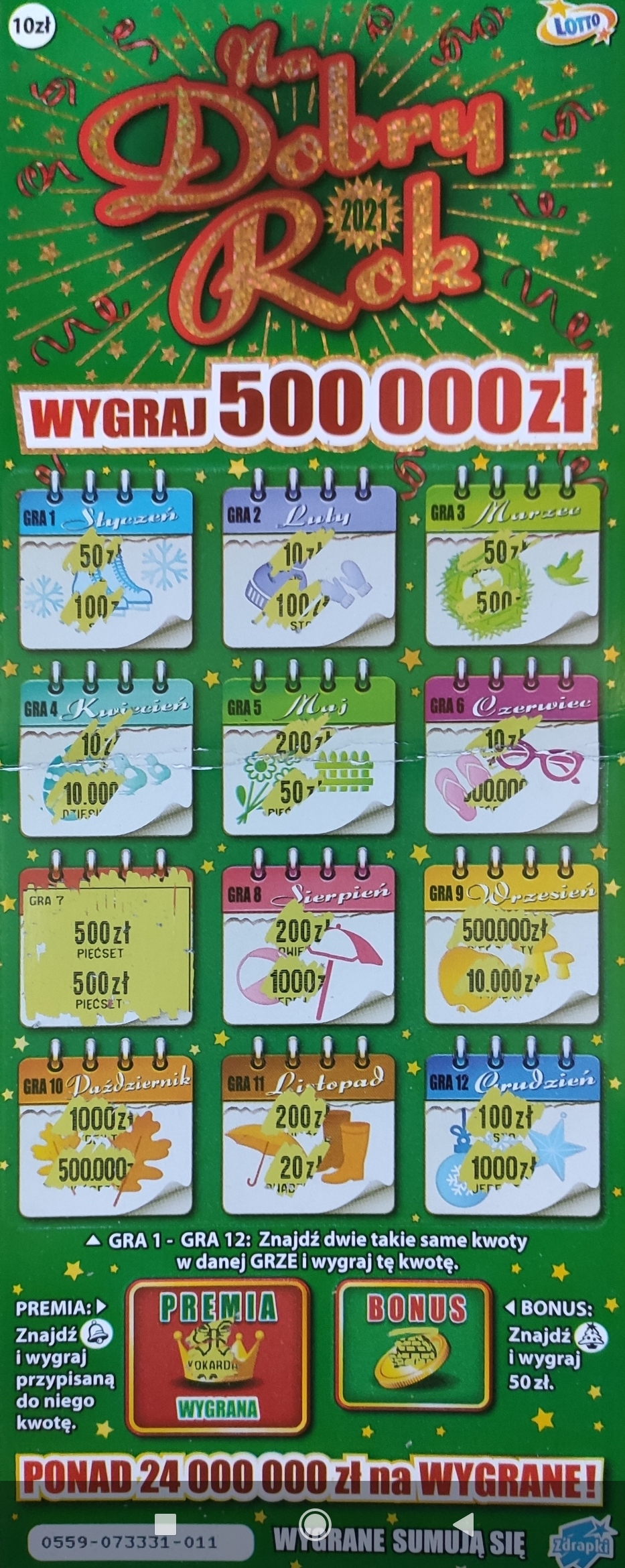 Zdrapka weszła w roku 2020 z dedykacją na rok 2021 a główna padła dopiero w 2022...