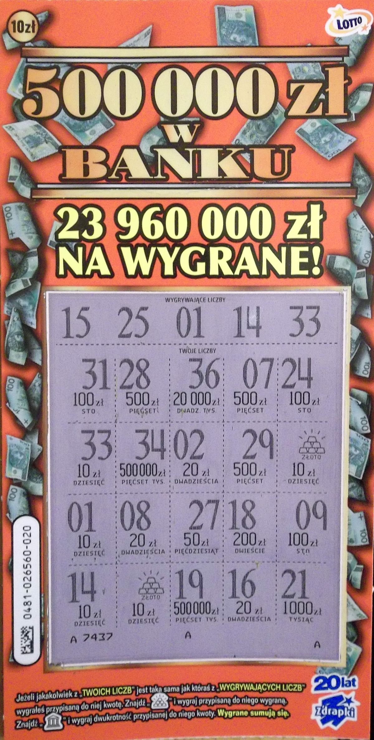 U mnie wczoraj 5 dyszek w Szybkim 50 a dziś udało się trafić 50 zeta w tej zdrapce, przy zakupie 1 szt. (023)