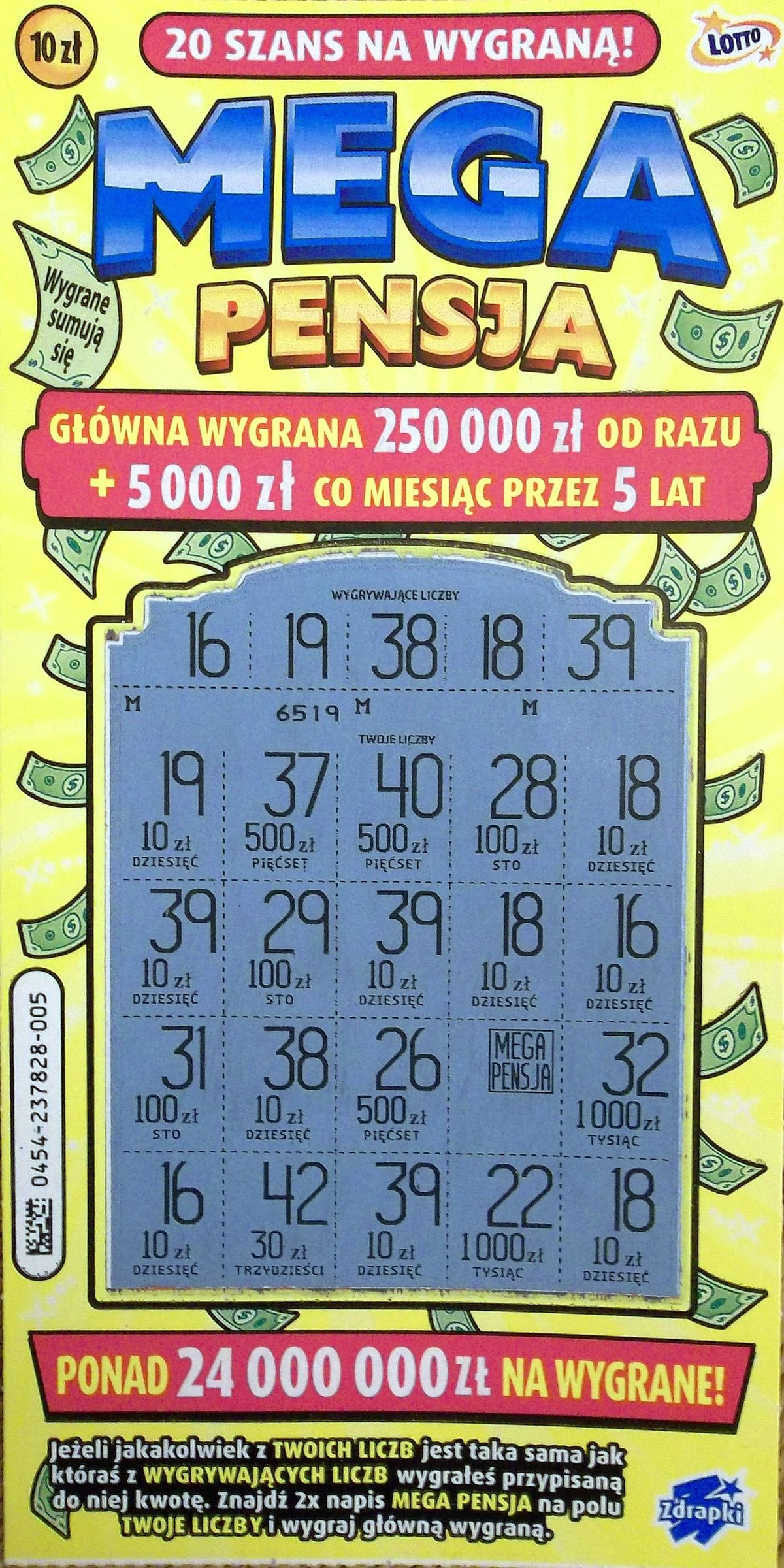Gratulacje ERER33 pisze: ↑27 lis 2018, 21:29Dzisiaj w spożywczaku chciałam wziąć jedną sztukę MP. Ekspedientka podała mi tak na szybko nr 005. Poprosiłam o możliwość wyboru z większej ilości. Było gdzieś około 20 sztuk. Zerknęłam na inne, ale w końcu jednak wzięłam ten nr 005Później okazało się, że siedzi tam 100 zł