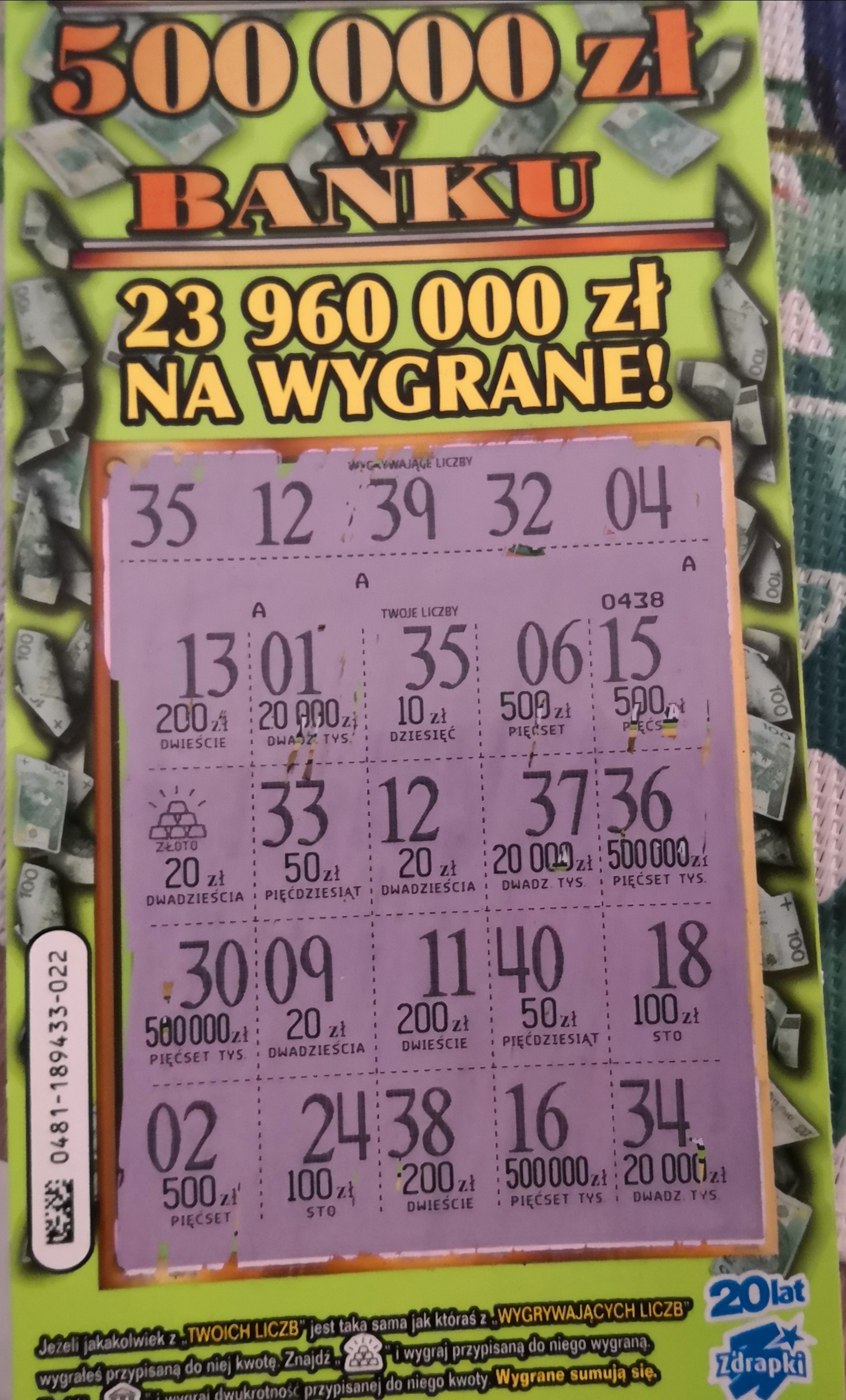 Czarekreal a pamiętasz na jakim numerze zdrapki miałeś wygraną