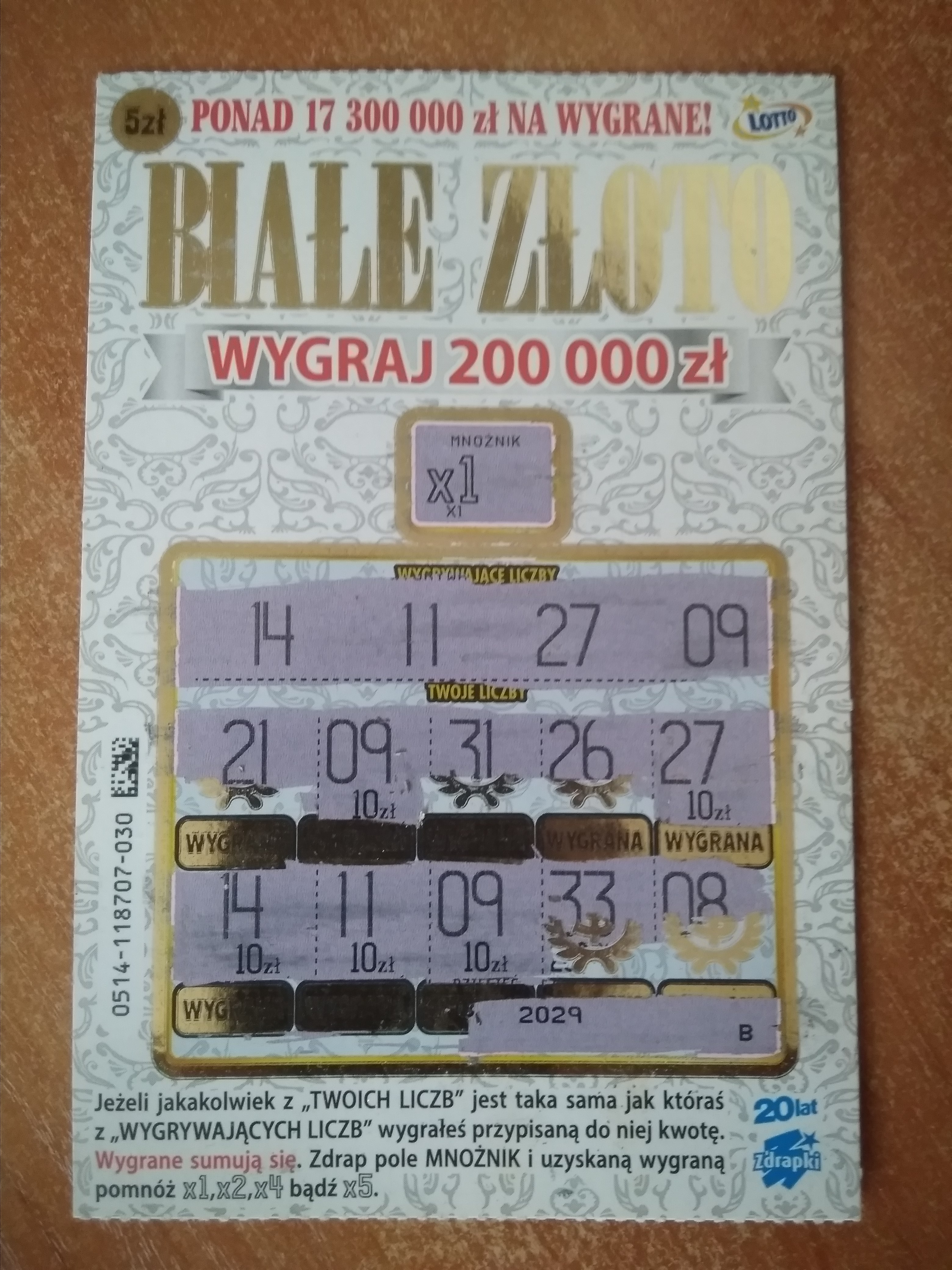 Biorę zazwyczaj po jednej sztuce białego złota i podwójnej gry i tak ostatnio wpadło raz po razie 50 pln