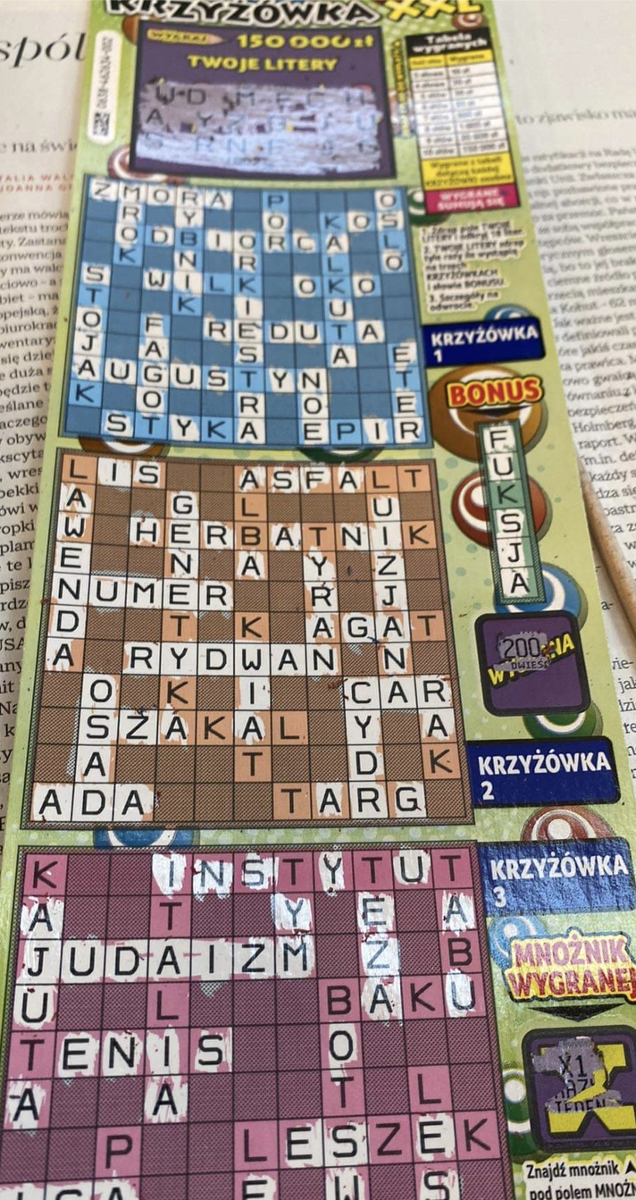 Mega farcik dziś mi towarzyszy, a takim trafem biorąc dwie krzyżówki do kawy wpadło 200 zł UUU w nr 16 i 20 zł w nr 22