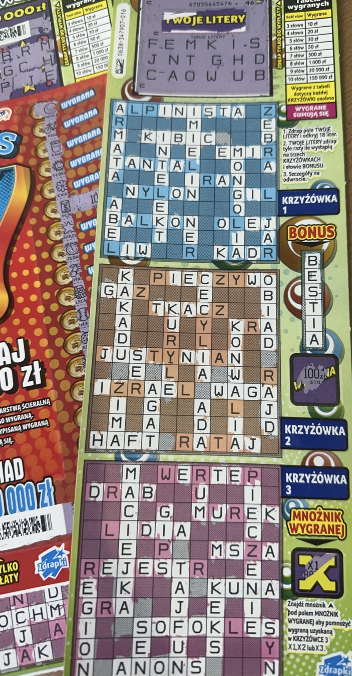 Mama ostatnio na wzięte 2 sztuki z jednej paczki utrafiła 50 i 100zł, a dzisiaj po kilku latach regularnego drapania pobiła swój rekord i wygrała potężne 200zł