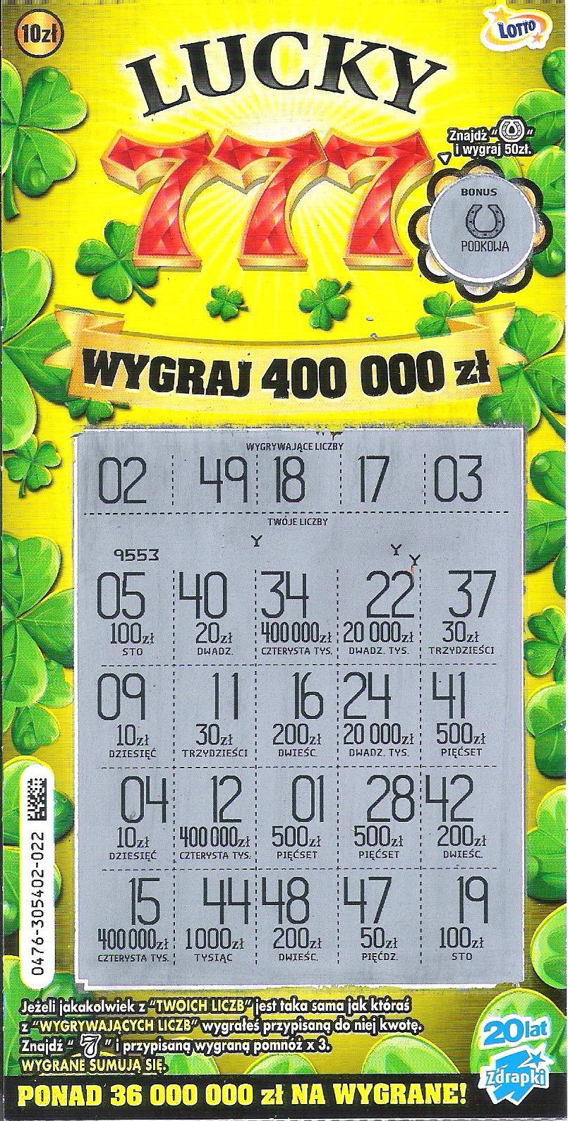 50 złotych. Znów trafiła się 7 ale tylko z dychą.