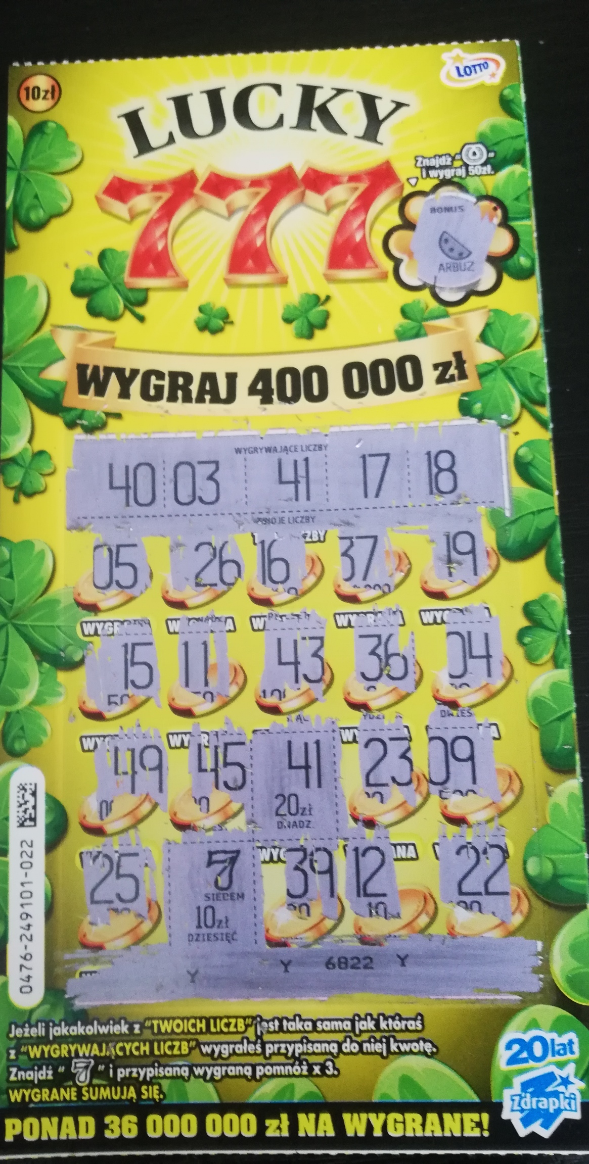 Trafione 50 zlotych z liczbą 7. Siodemka rozbudziła nadzieje na lepszy wynik....