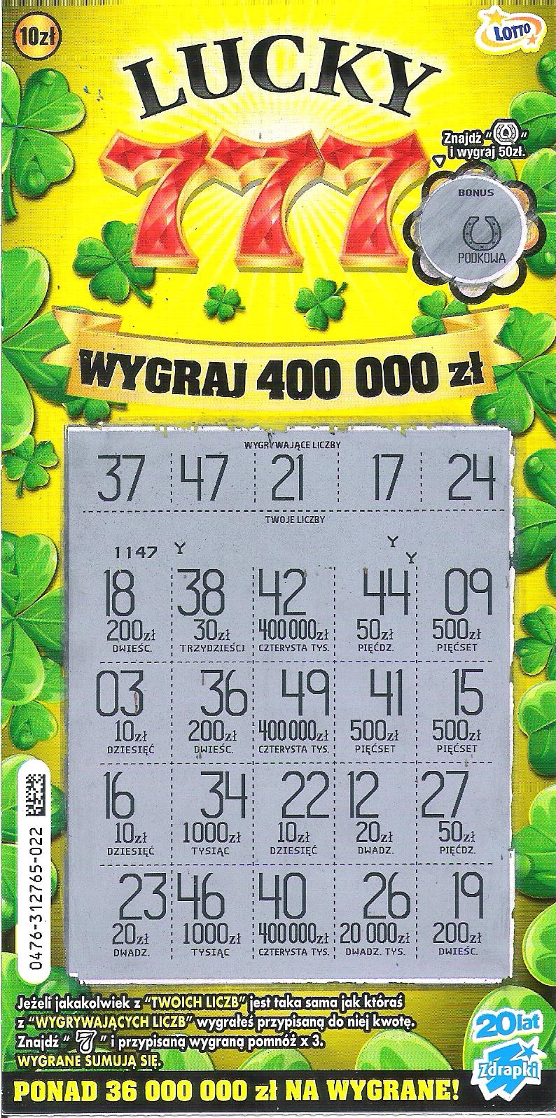 W tym nr czasem coś siada (mowa o zdrapkach po dyszce)