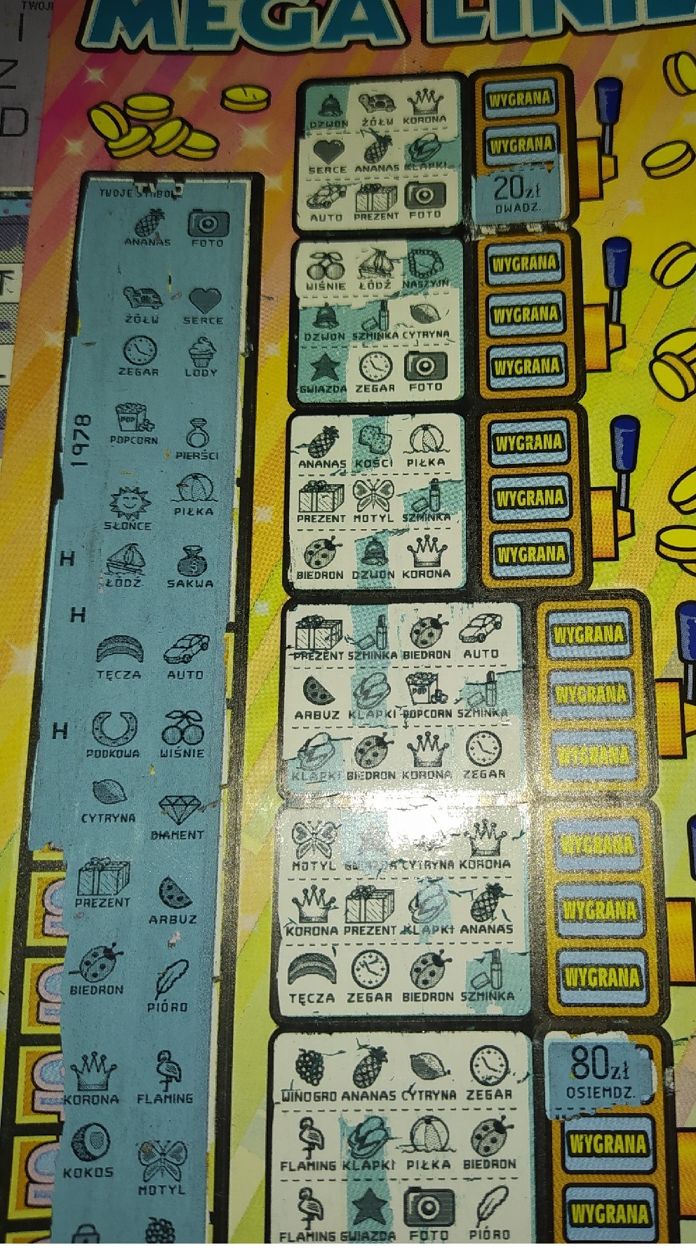 Nie ma tu aż tak dużo wygranych, bo zdrapa słaba, ale wstawię też może swoją 80-tkę