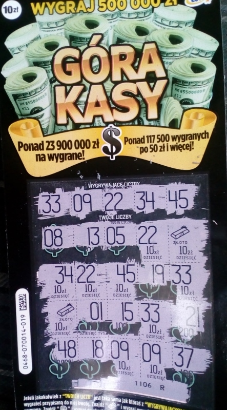 Aktualny stan losów zdrapki Góra Kasy dla Trójmiasta na dzień 24.09.2019 r. godz. 12:00 8-)