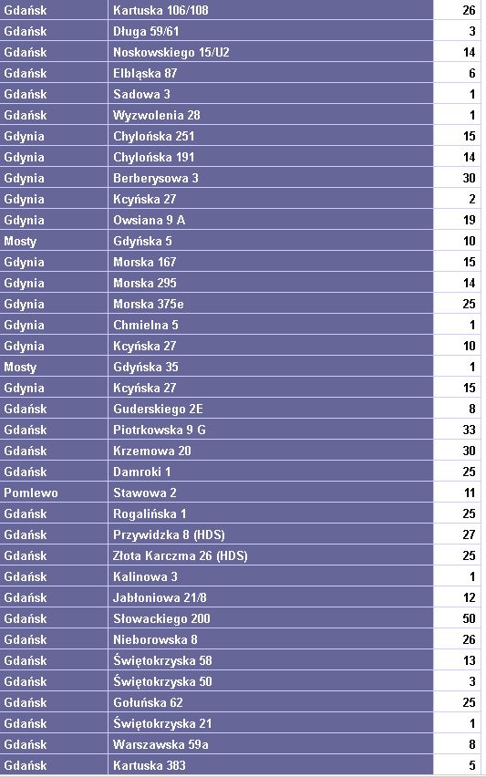 Dostałem Kielce i Kraków. Wrzucę wieczorem.
