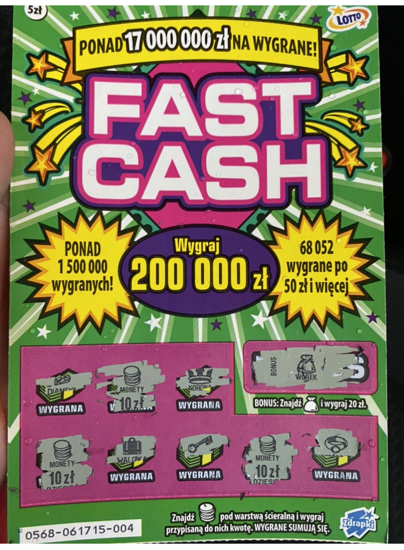 50 i to przy jednej sztuce . Od pewnego czasu dłubię w zdrapach za piątkę i o dziwo idzie mi całkiem dobrze