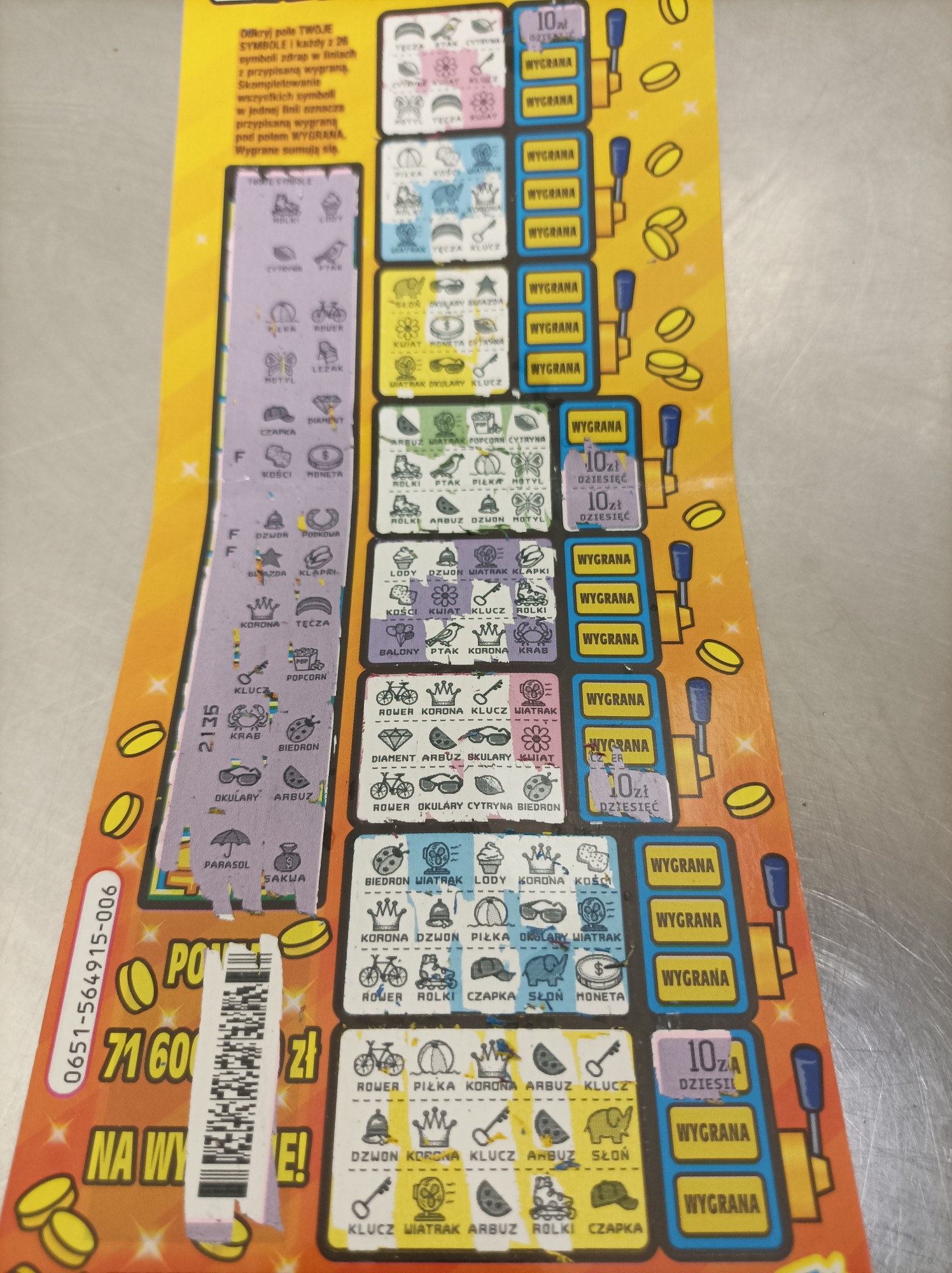Zdjęcia tym razem nie mam, ponieważ myślałam, że wydrapałam 30 zł. Dopiero w kolekturze okazało się, że jest to 50 zł i nie wydrapałam jednej linii