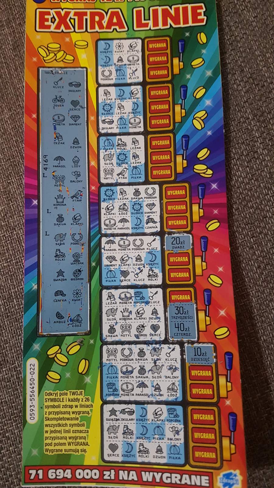 Na dwie kupione zdrapki po 10zł jedna pusta, a w Extra linii było 50zł w numerze 25.