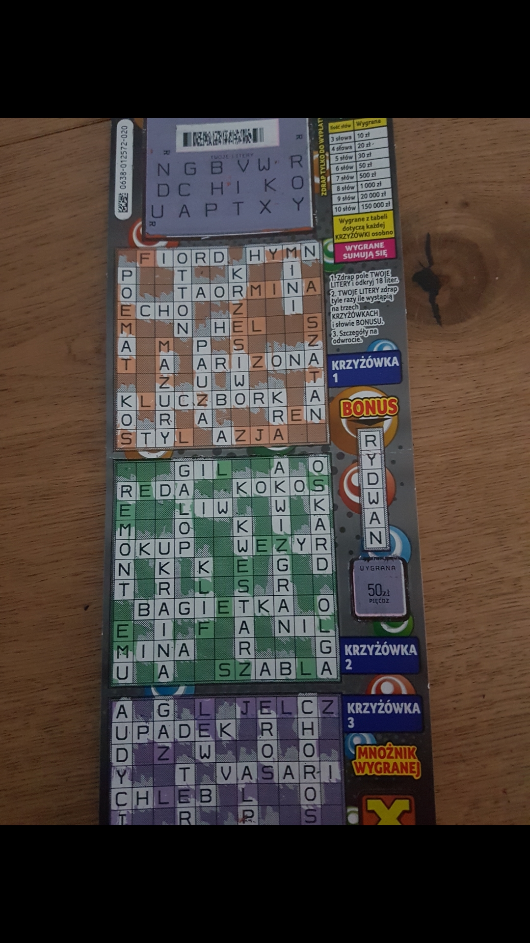 Kwota nie duża pierwsza 50 W tej edycji no i bonus RYDWAN z literami A i R