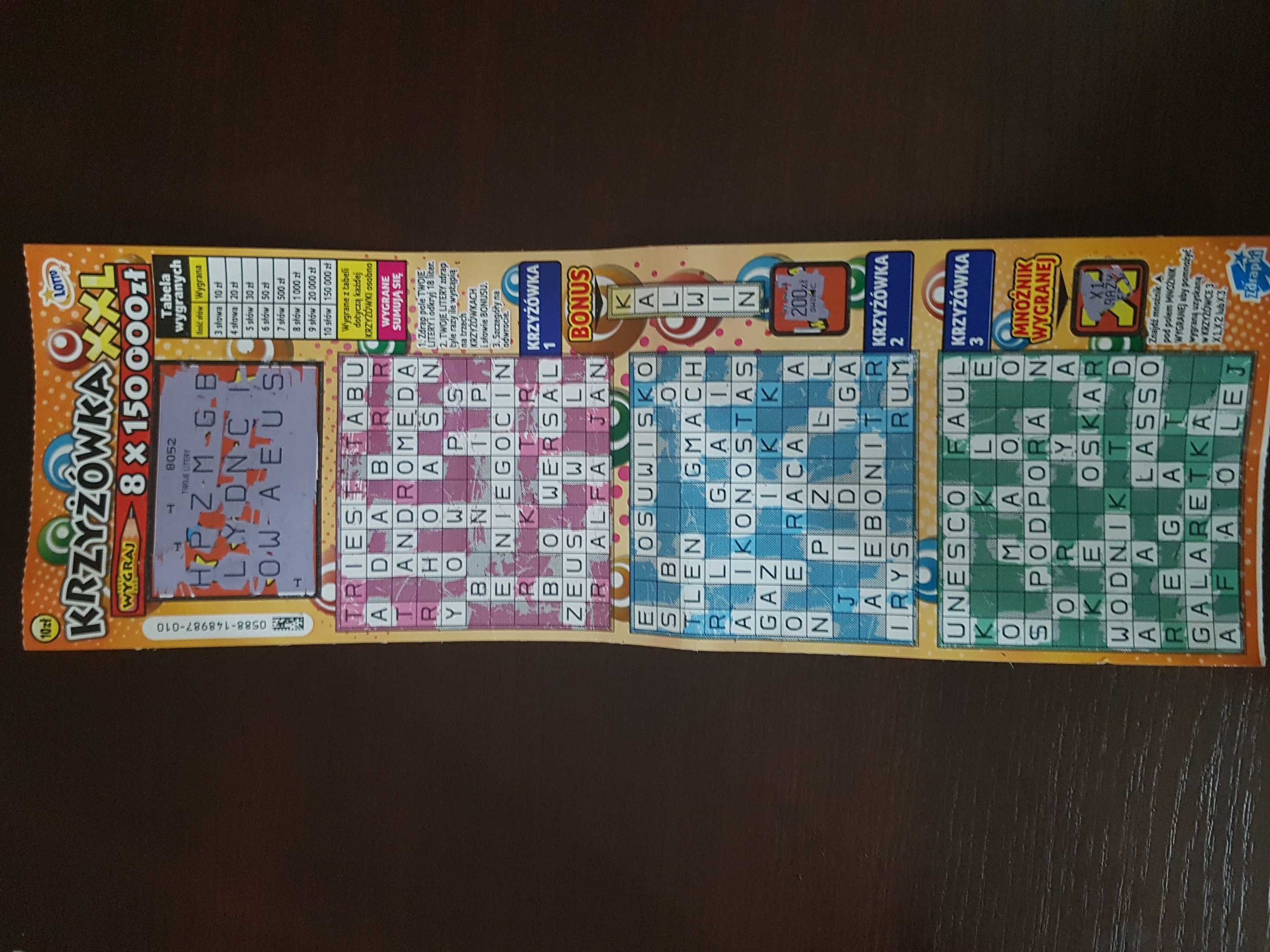 Dzisiaj przy jednej sztuce 40 zł w numerze 24. Jak dotąd to moja największa wygrana w tej odsłonie krzyżówki. Czasami miałam wrażenie, że kupuję z paczki, w której są same pustaki. Jednego dnia trafiłam aż 6 z tego samego sklepu. Może to jakieś przełamanie będzie