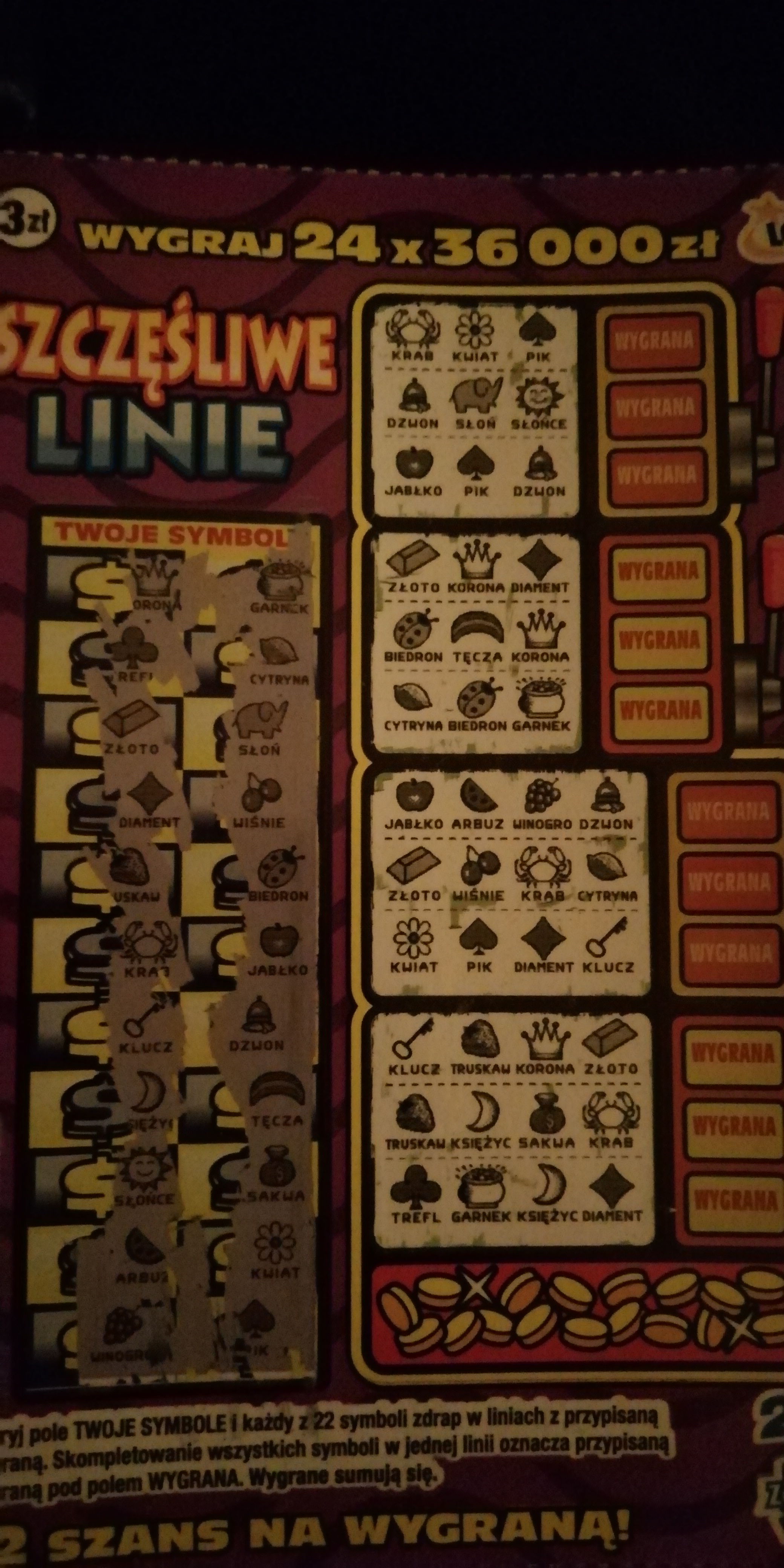 Gratuluję. Linie to fajna zdrapka. Ja miałam max 36zł, 360zł super wygrana za 3 zeta.