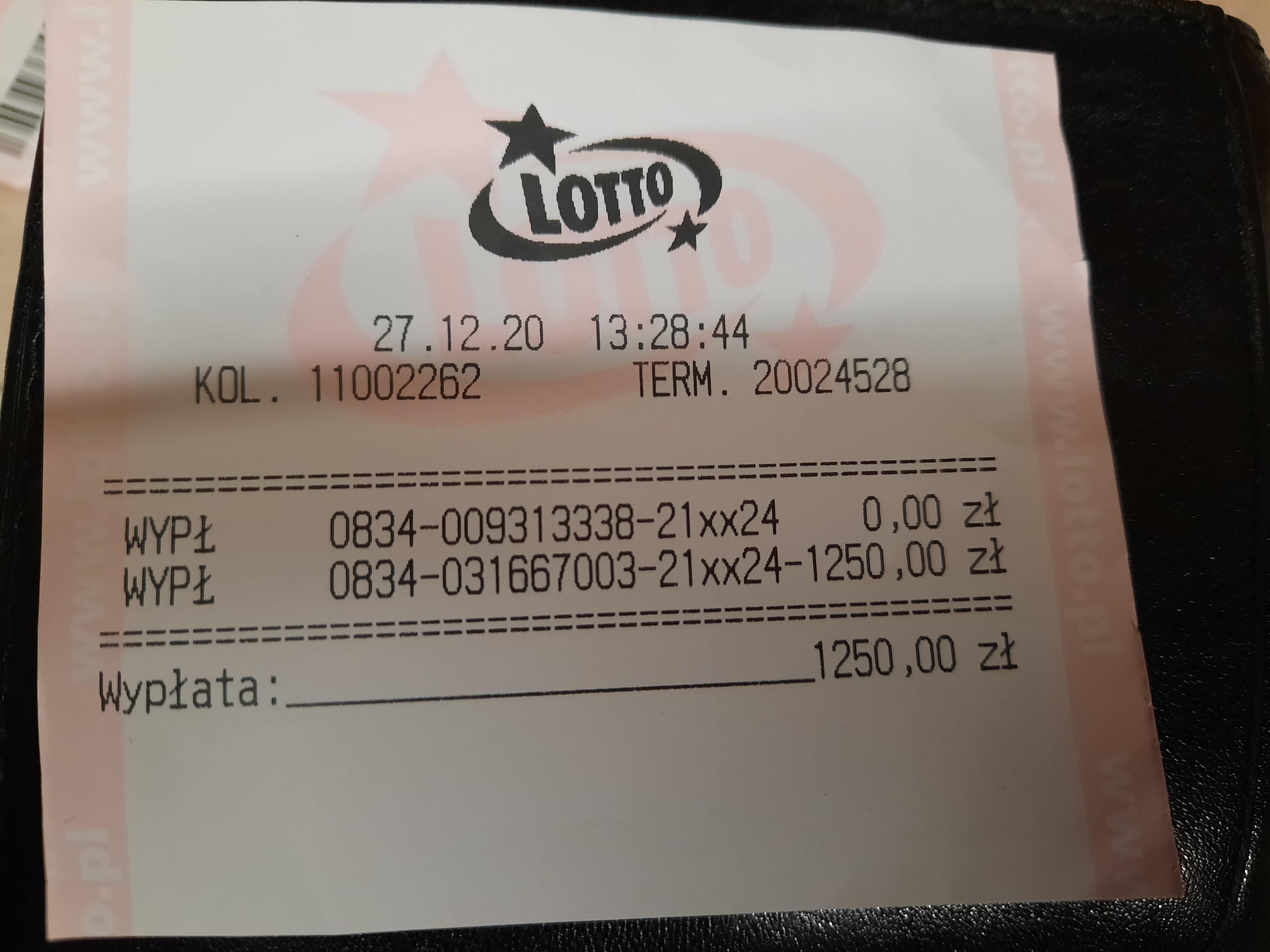 Wysłałem 3 zakłady na 2 losowania. Trafiłem pięciokrotnie 2zł