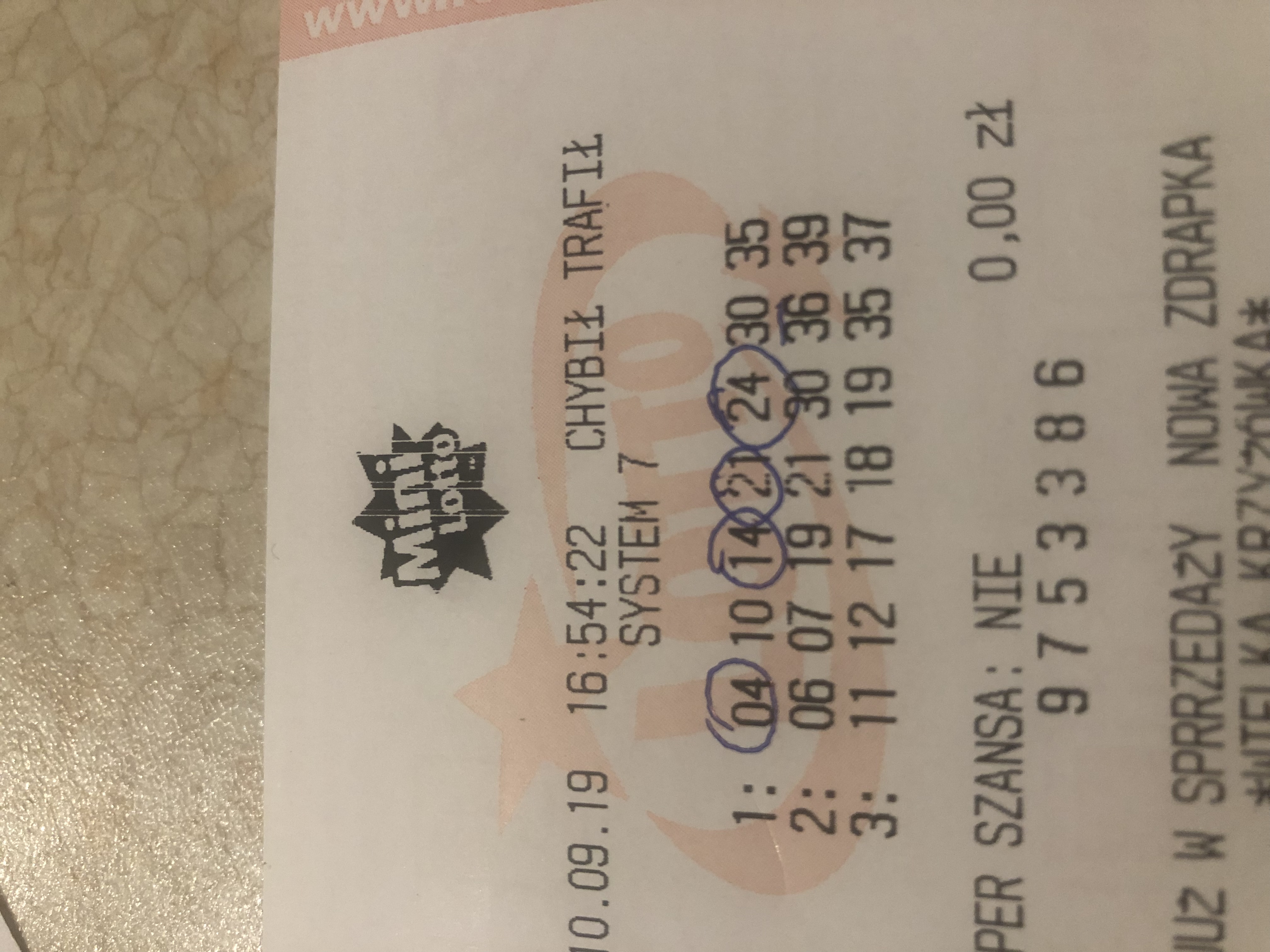 Miałam dzisiaj szczęście - trafiło się 4/5 system 7, z obokiem (było 31, miałam 30).