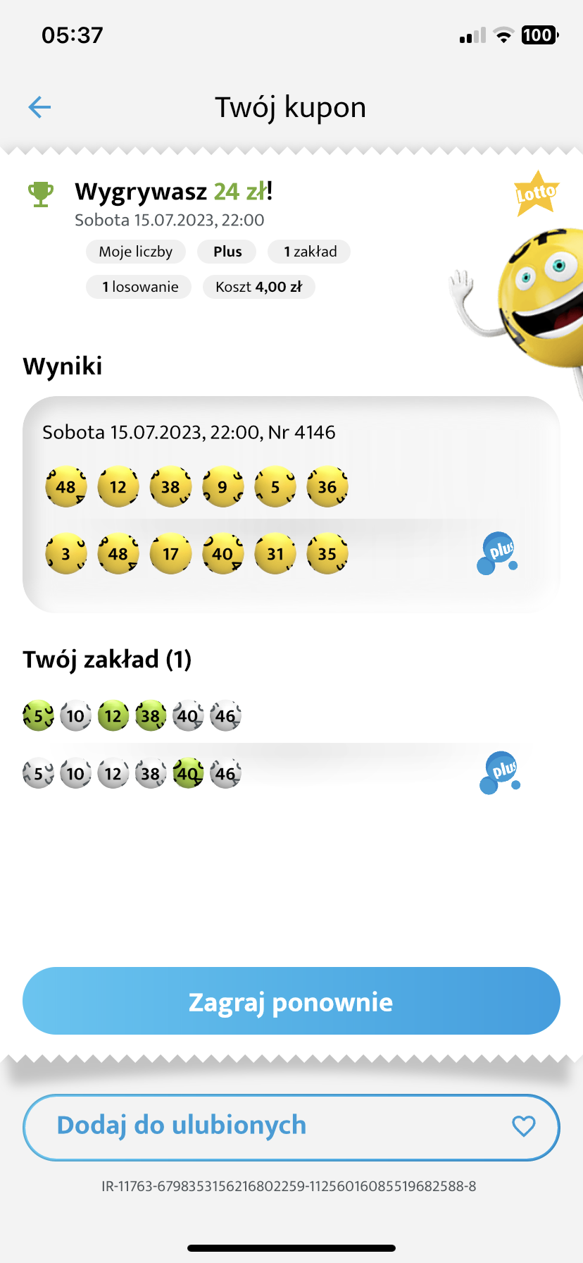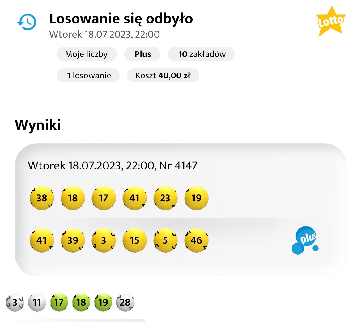 Coś do typowania liczb z czwartku na piątek śniły mi się liczby w różnych sytuacjach liczby.. 5,10,12,36,38,40,46 tak blisko a tak daleko… losowanie 15.07.2023 wpadła tylko 3