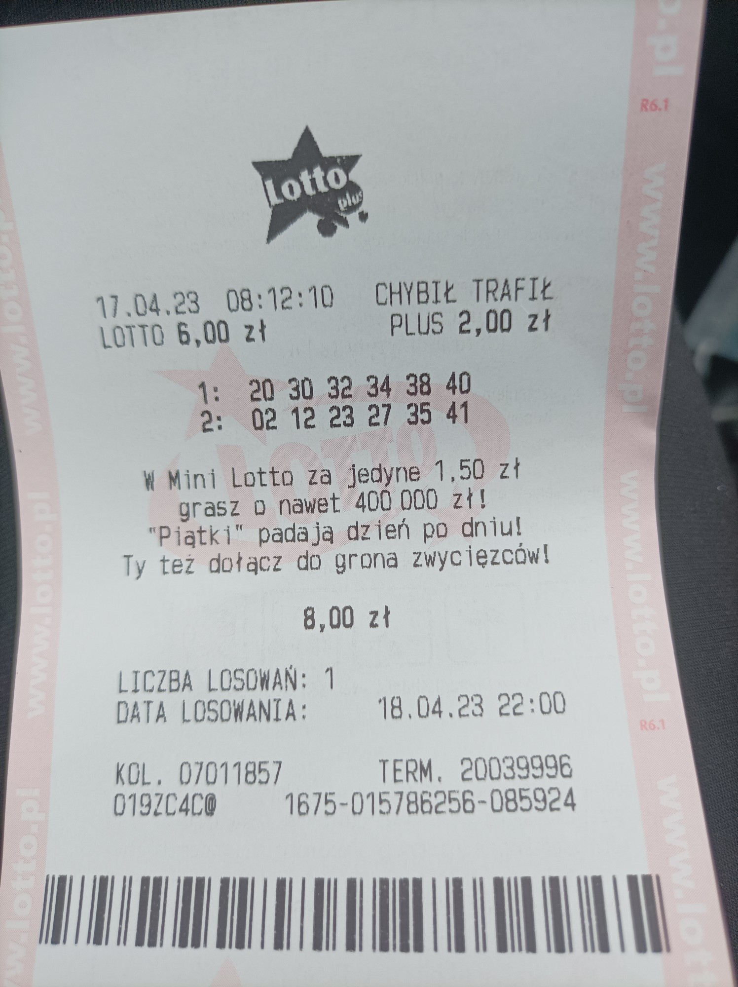Dziękuję Wam wszystkim i też Wam życzę wygranych. Najlepsze ,że na tych samych liczbach miałem jeszcze 2jke w zwykłym lotto. Ja tych dwójek mam dużo i często. W samym zeszłym tygodniu miałem 4 dwójki, a jakby doszło do trójek, to by było pięknie. Zwłaszcza, że też robię Eurojacka. Powodzonka.