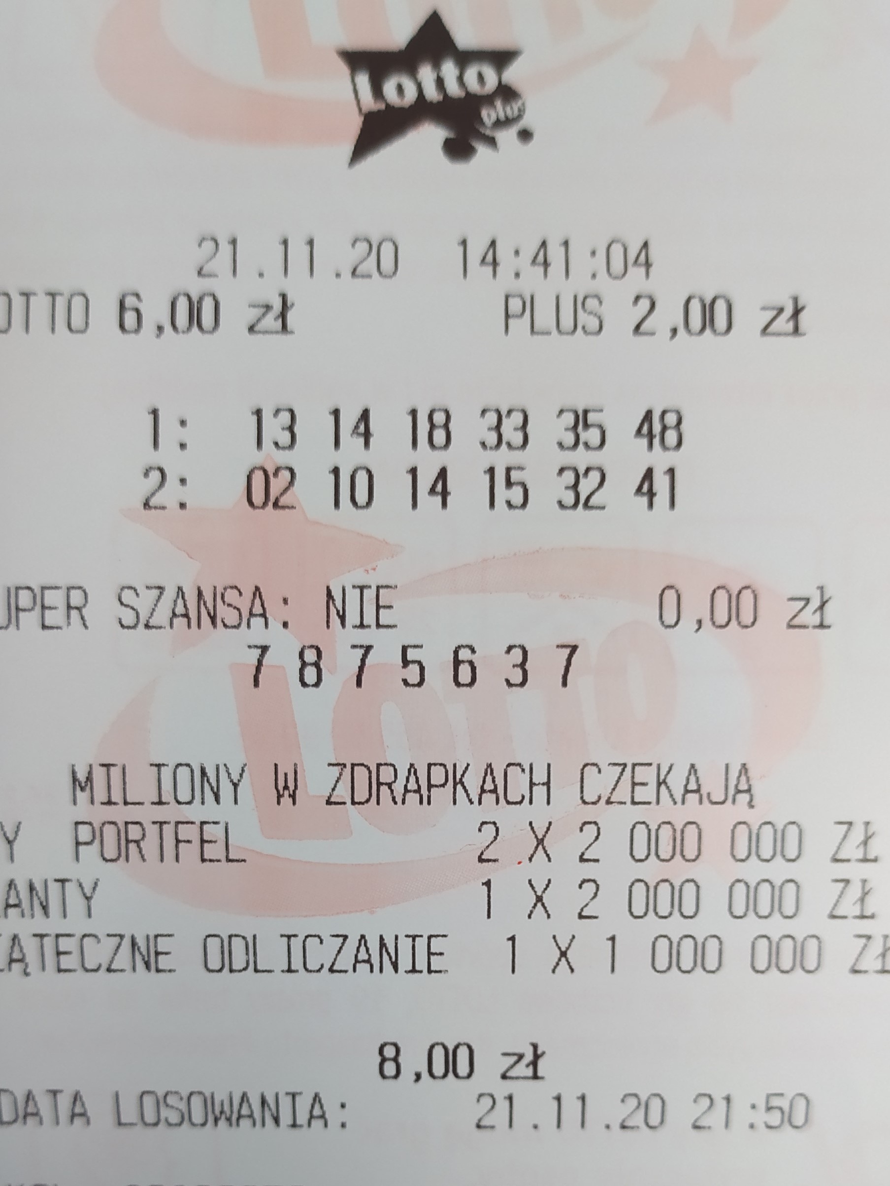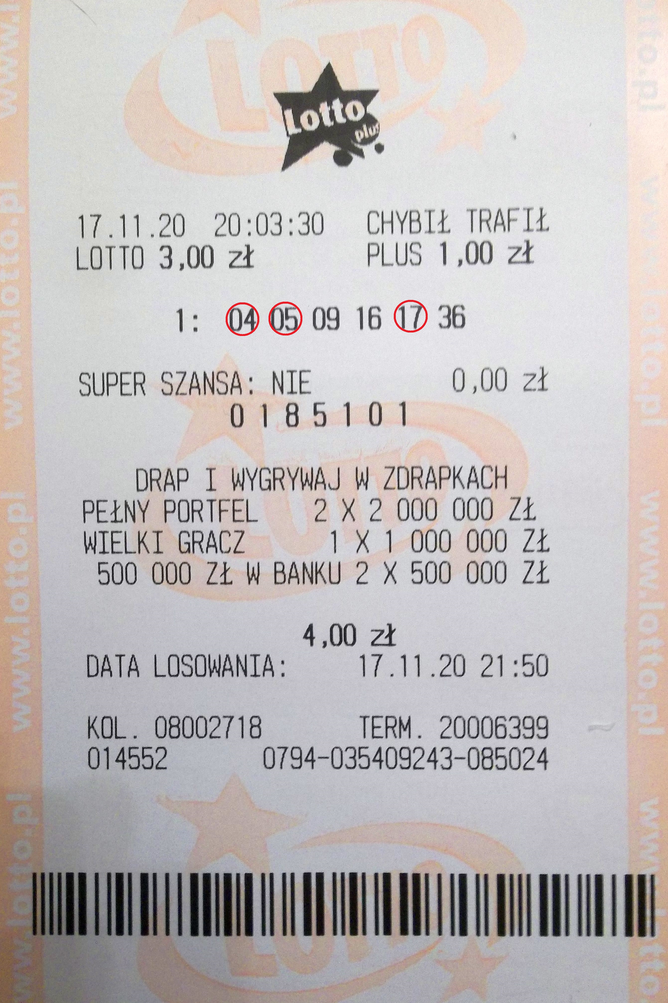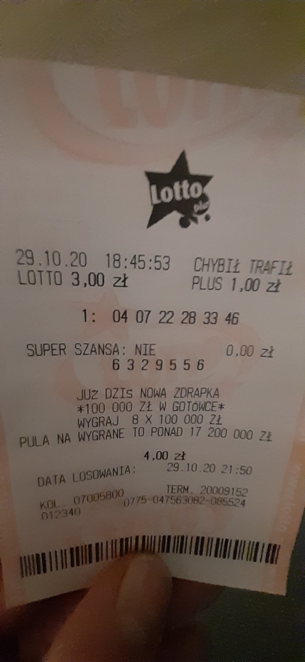 Mnie wpadła trójka na WT, ale tak naprawdę CT. Używam generatora liczb i przy większej ilości zakładów rotuję liczbami. Przykładowo, generuję sobie liczby i do wygenerowanych dodaję 2,3 lub każdą dowolną liczbę, potem w następny odejmuję itd. Często mi coś wpada, czasami mam nawet 6/6 tylko w zbiorze 5,6 i więcej zakładów.