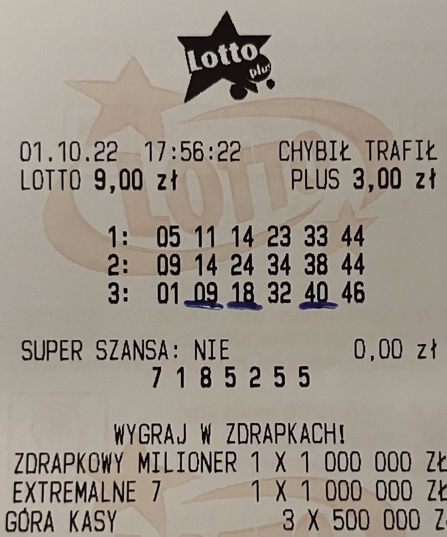 Ten miesiąc jest dla mnie szcześliwy w Plusa, miałem 1x5 i 5x4. Dzisaj wpadło 3x4 i 5x3.