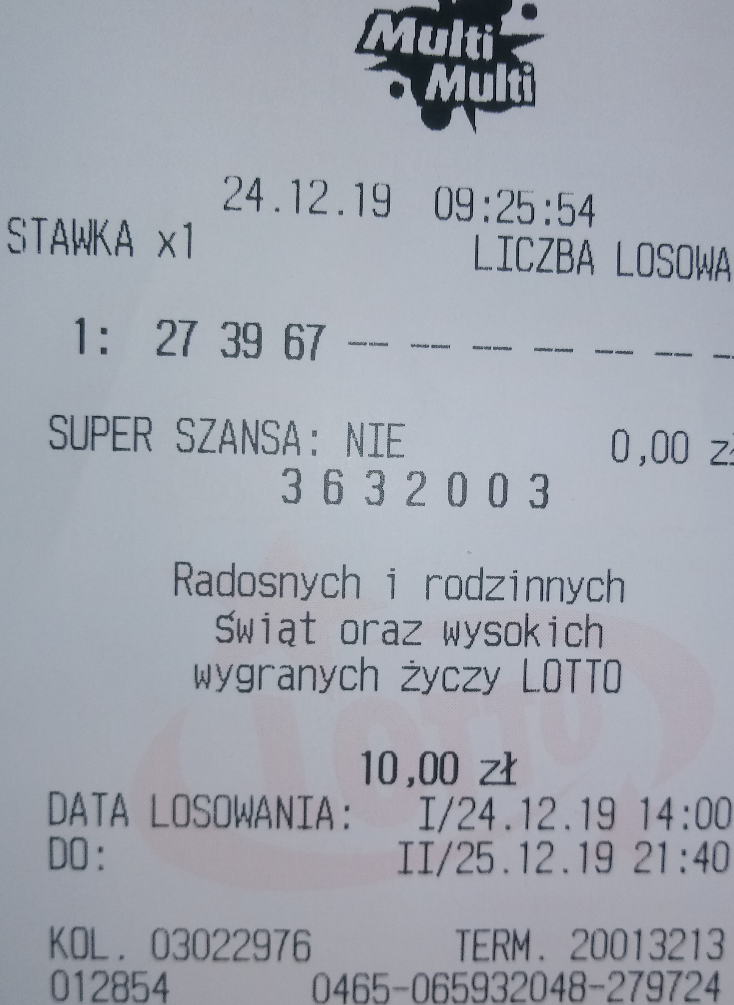 Super gratuluje. To już następna wygrana w krótkim odstępie czasu. Też gram na 3 liczby. Jak nieszło to grałam na 5 liczb i było gorzej więc z powrotem gram na 3 liczby. Znowu widze dobre liczby 27 i 39 które często chodzą. Dobrze kombinujesz z tymi liczbami. Wygrane niewielkie ale będzie chociaż na darmowe granie. Życze ci jak najwięcej takich wygranych.