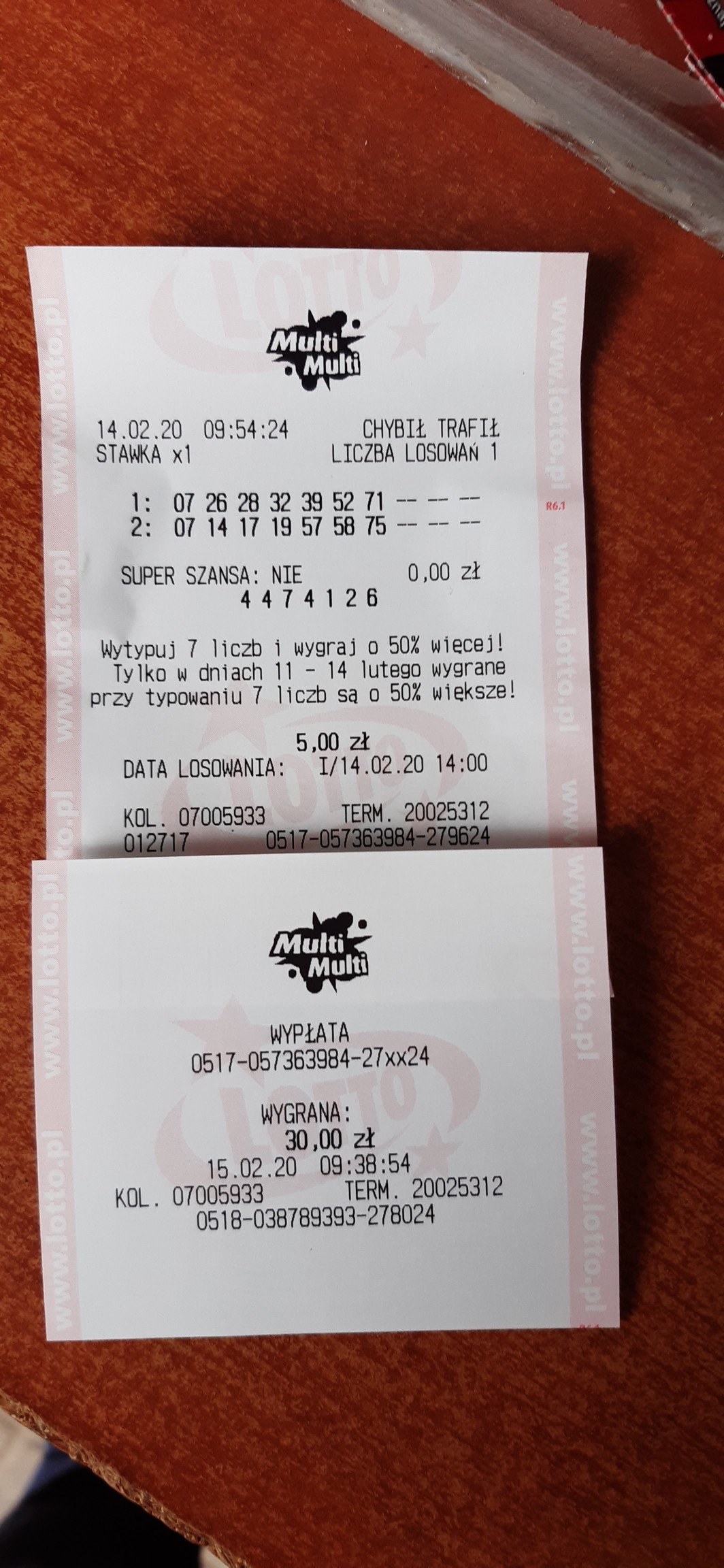 Dziś o 14 trafione 5/7 i 2 x 3/7 na CT bez plusa