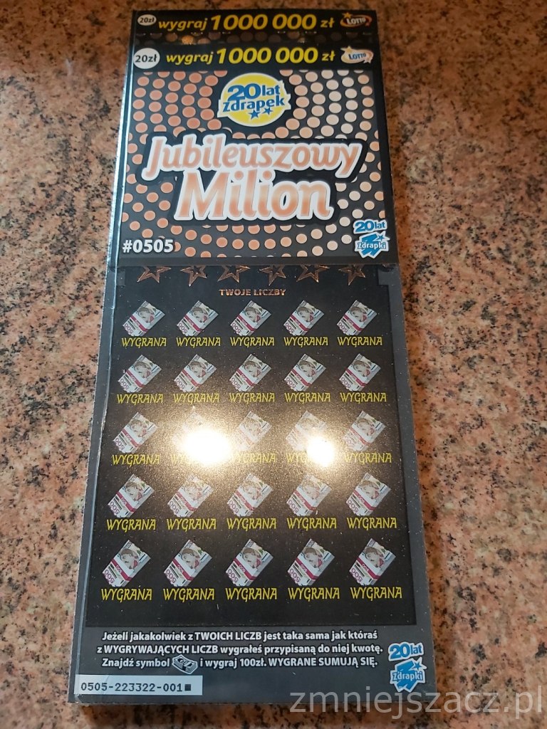Zdrapka numer 013 była pusta ale za to w zdrapce z numerem 008 trafiło się 100 zł