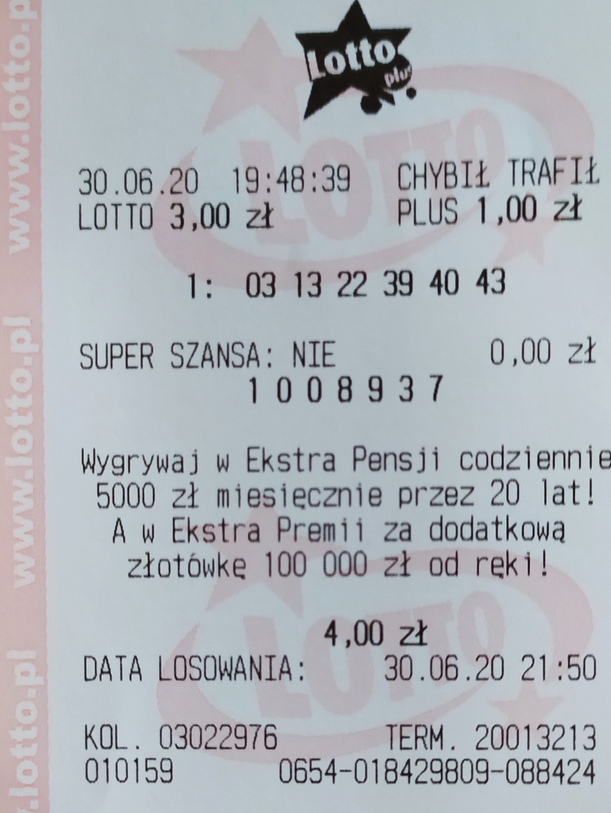 Moje wnioski - wszystkie moje wygrane w którąkolwiek grę liczbową powyżej 30 ZŁ były na chybił trafił