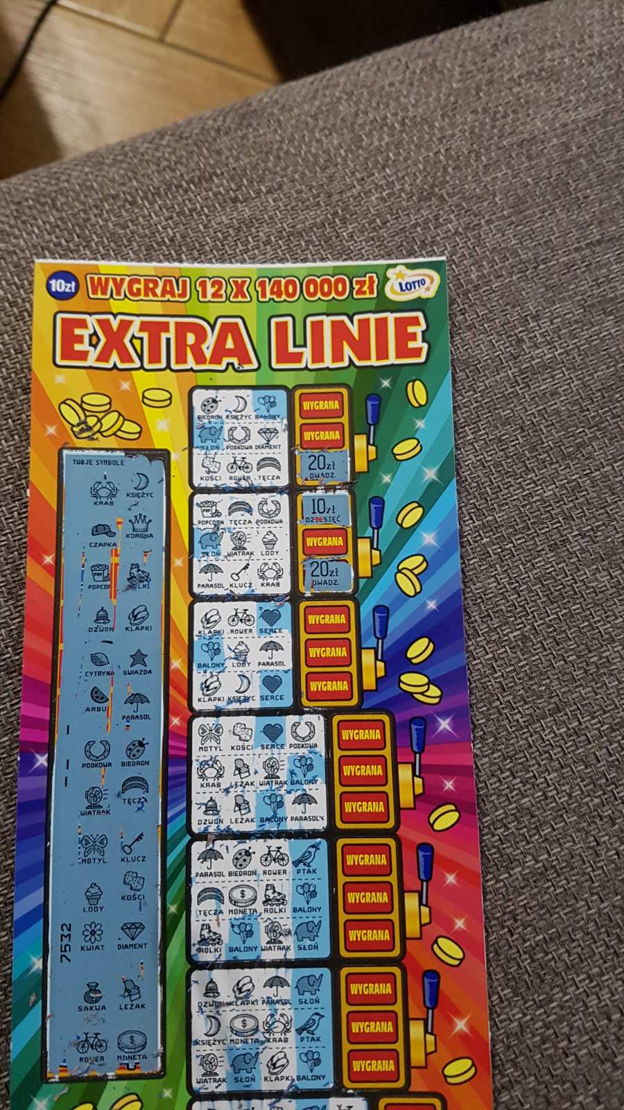 Na dwie kupione zdrapki po 10zł jedna pusta, a w Extra linii było 50zł w numerze 25.