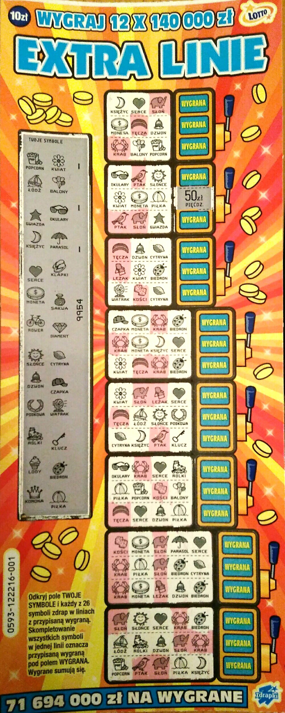 Pojawiła sie u mnie druga wersja tej zdrapki. Kupiłem 1szt 019 i 40 wpadło. Seria 02xxxx.
