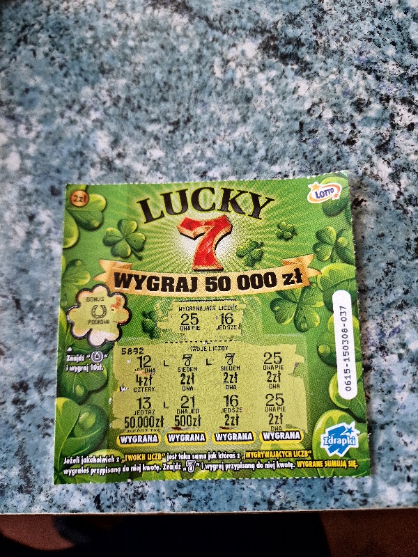 Z braku szybkiego 50 zakupiłem dzisiaj 5szt Lucky7 i zupełnie niespodziewanie pod jedną z nich kryło się 40zł