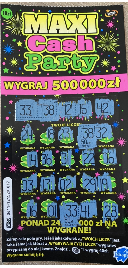 Dzisiaj znów wziąłem zdrapkę z nr 12 do mixa i wpadło 40 zł!