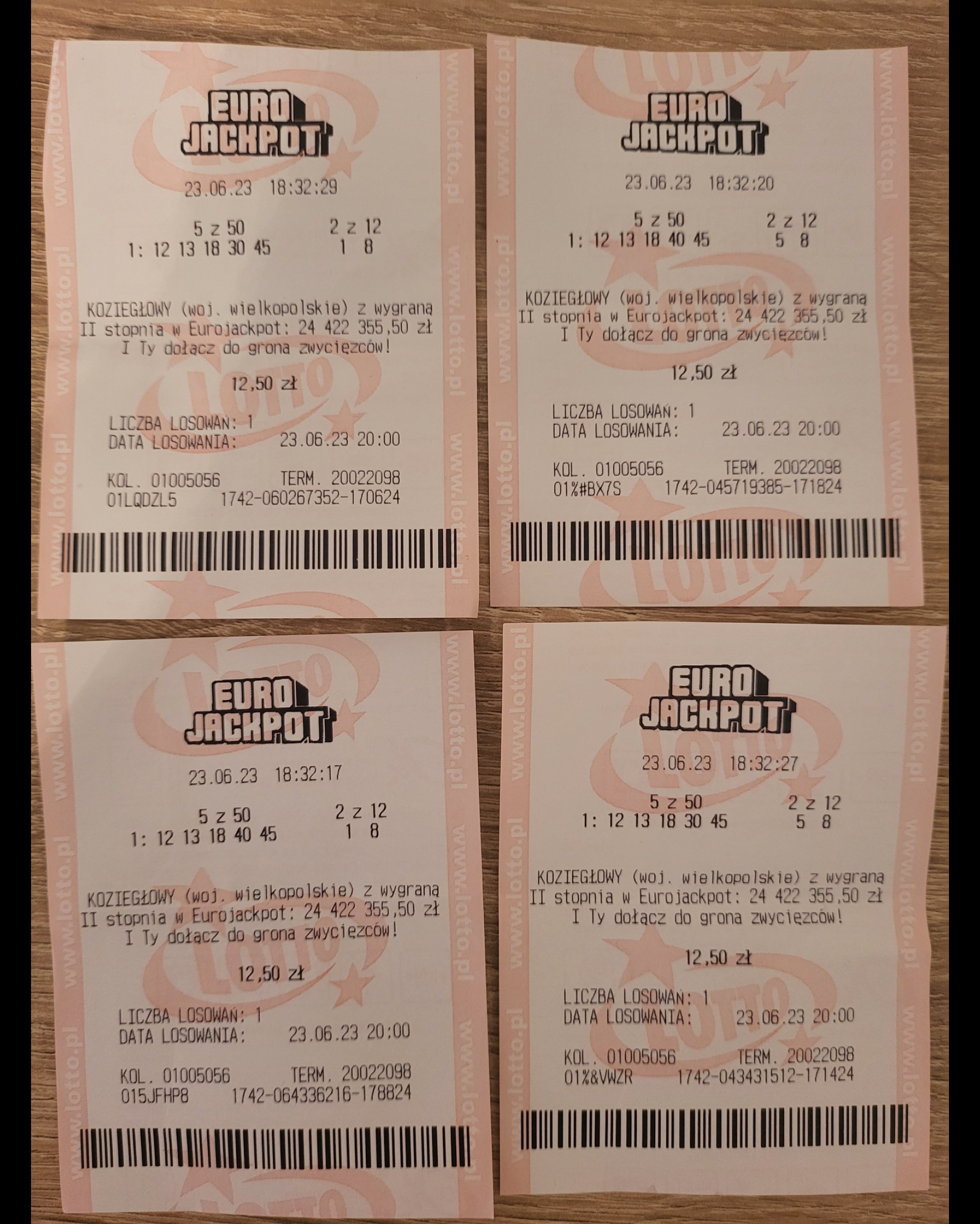 Porównaj sobie wygrane na stopniu 4 + 2 w różnych losowaniach to dopiero jest cyrk, są takie po 100 tysięcy i można znaleźć takie gdzie było 800 tysi