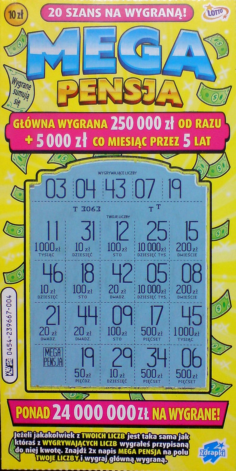 Dziś jedna sztuka ze zdrapkomatu z nr 013 i zwrot na ostatniej pozycji pod liczbą 05