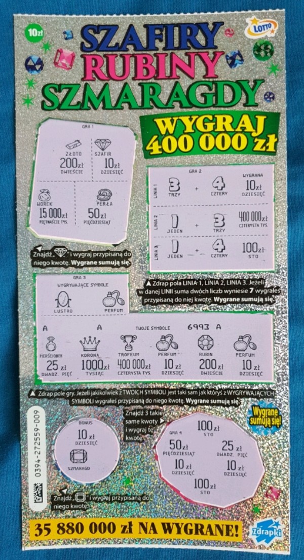 Zdrapka na mojej liście do polowań. Zobaczymy czy w ciągu najbliższych 3ech tygli nic nie wpadnie z głównych. Czaję się jeszcze na Rozbij Bank i 10xKasa.