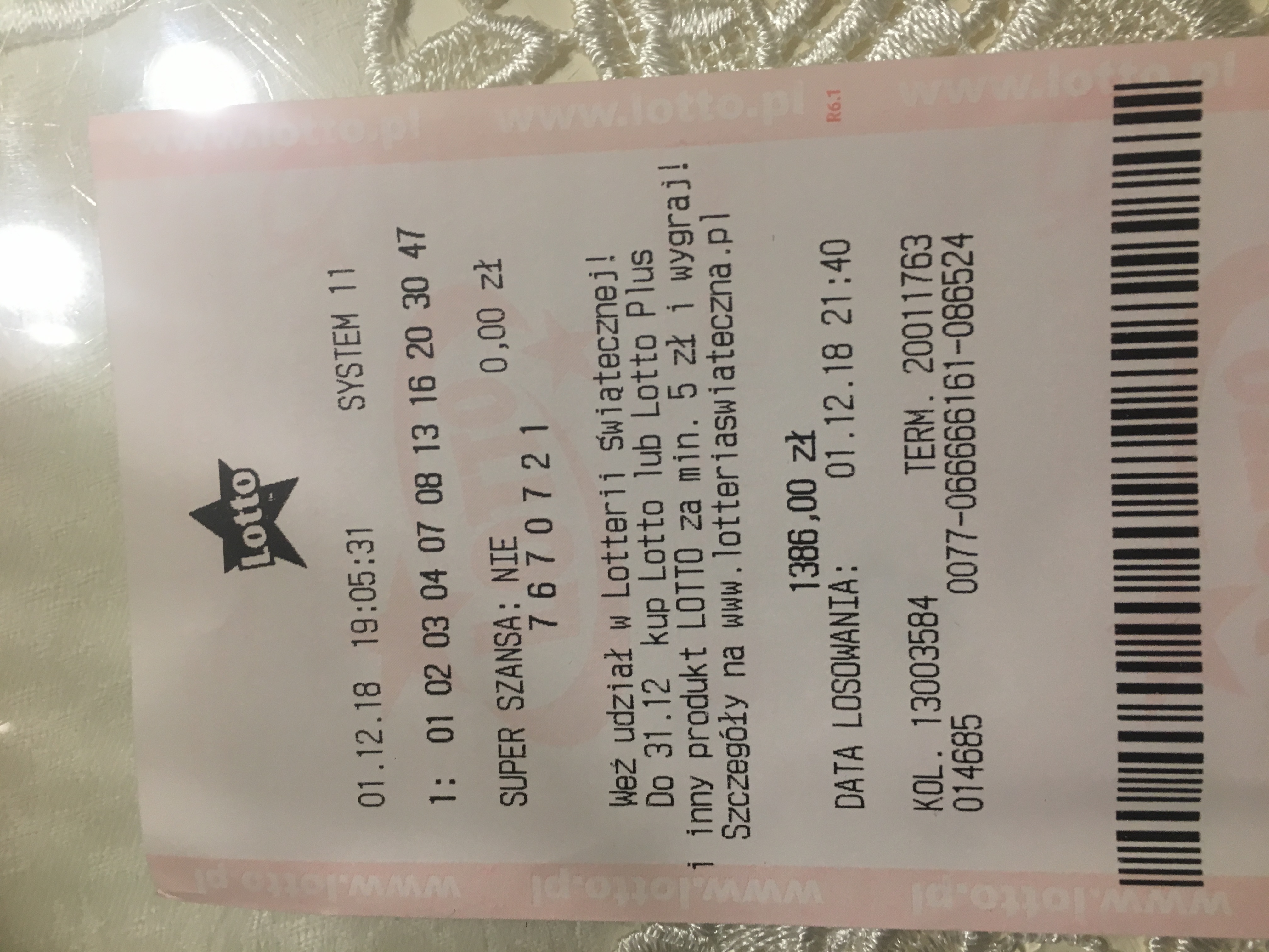 wcześniej 3 razy dokładnie tak zagrałem i tylko raz padła 4/6 za 180 parę złotych , zwrot z tego kuponu miałem jednak tylko ok 270 zł , ogólnie w karierze mam kilka 4/6 ale to i tak zawsze były tylko niewielkie zwroty z podsumowań miesiąca .Widzisz w tym kuponie który załączyłem zapowiada się ze przegram całe 400 zł bo zostały mi tylko 2 losowania do końca a nie padła nawet 1 trójka , nie zakładałem tego i raczej granie w grudniu odpuszczę . W mini grywałem kilka razy systemami 9,10,11 i naprawdę szału nie ma bo tylko raz w 2016 roku miałem 4/6 system 10 coś około 4000 zł , 3/6 w systemach też bywały ale powiem wam że dajcie sobię z systemami spokój bo to jest gra nie warta świeczki . Masz np 12 liczb na kuponie ale tych których nie masz jest 30 .Oj dużo by tu pisać , powiem wam jeszcze ze z mojej strony wielkiego szu tu nie będzie bo w lotto grywam już tylko od czasu do czasu . Za to jestem nałogowym pokerzystą i na pokerstars kilka razy wygrałem ponad 10 tyś zł najwięcej 30 tyś zł (turnieje typu big , sundy milion itp ale sporę wpisowe od +300zł .Bywały czasy że z pokera byłem na plus 40 tysięcy w skali roku ale zdarzyło się i być na -20 tyś :D taki hazard ale ogólnie szło dobrze bo nawet dzięki graniu w karyt on line miałem nawet ponad 2 letnią przerwę w karierze zawodowej i skupiałem się tylko na tym i żyłem głownie z tego . Sumy robią wrażenie ale wkład jakim się obraca jest naprawdę spory, w pokera gram od 2011 bywały czasem ze po 14h na dobe ale tym w ogóle nie rozmawiajmy bo żadnych dowodów ani szczegółów nie będzie , w sumie pomału kończę z tym