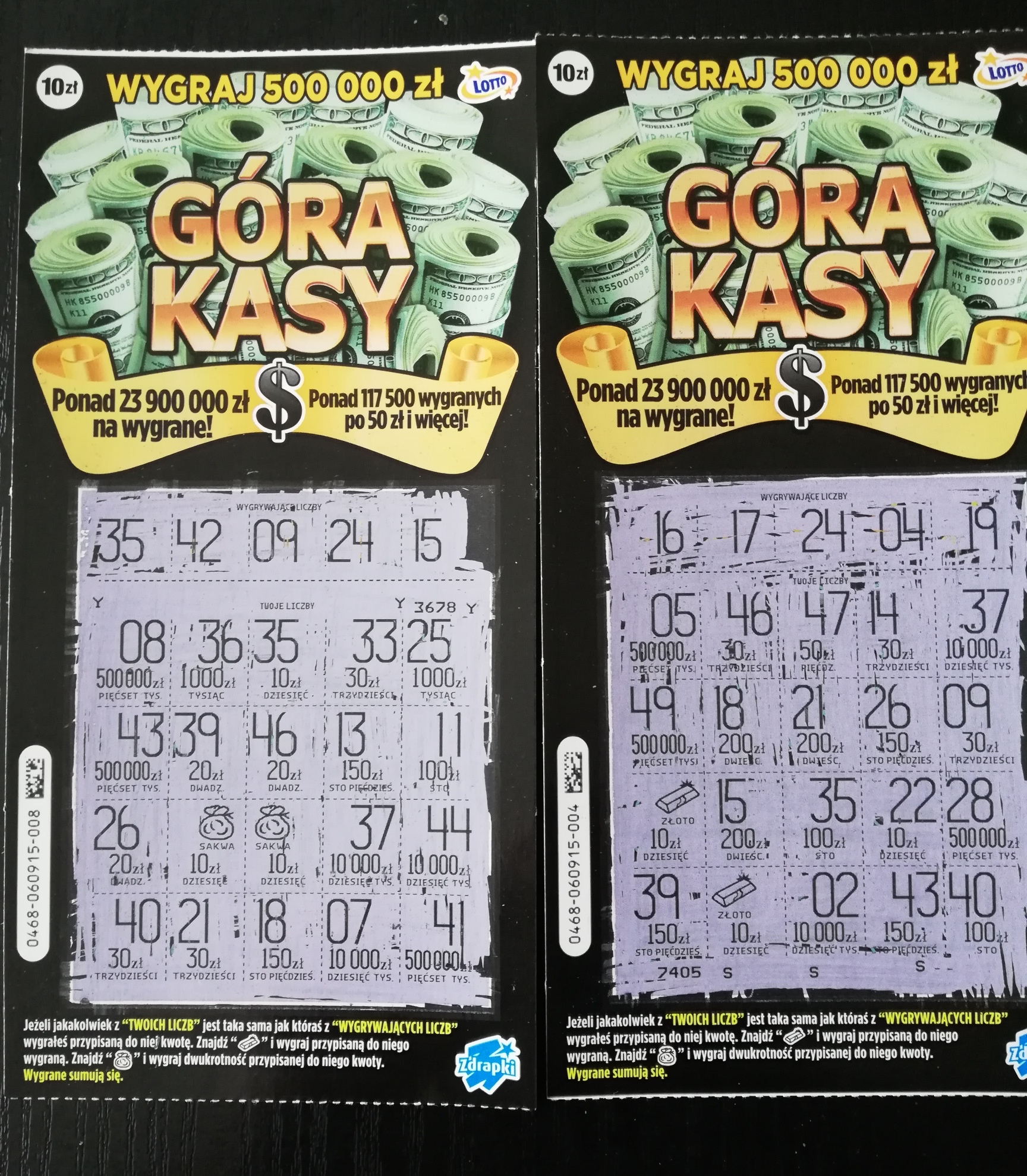 Taka niespodzianka. Na dwie kupione dwie wygrane.