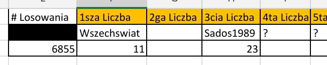 Typujemy liczby w kolejnosci. Podam po wczorajszym losowaniu.